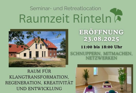 Am kommenden Samstag, 23.8., darf ich bei der Eröffnung der Seminar- und Retreatlocation Raumzeit Rinteln mitwirken.